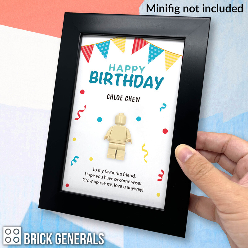 You can buy your desired custom minifigure to be displayed inside the frame.